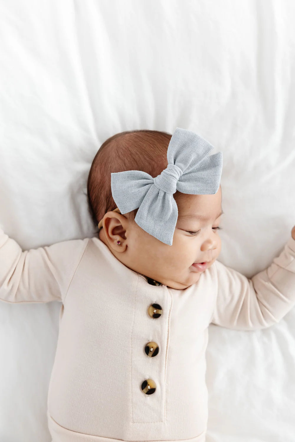 This is the perfect classic bow for your darling little girl! Each bow is hand tied and is attached to either a one-size-fits-all nylon headband or alligator clip. All bows are secured so they do not come undone!