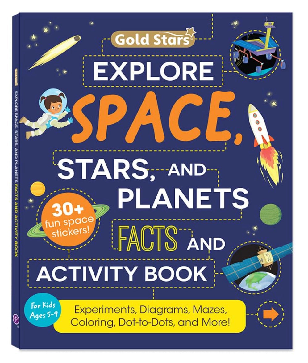 Gold Stars Explore Space, Stars, and Planets: Facts and Activity Book with Stickers for Kids Ages 5 to 9 is packed full of experiments, diagrams, mazes, coloring pages, dot-to-dots, and more! Learn about the vast and wonderful universe with this fun, educational science workbook! Stand by for lift off with this space and solar system book for kids! Includes Stickers, Activities, and Experiments: Take a trip into space and learn the facts. Complete activities, puzzles, mazes, experiments, and more on your exciting journey with 30 fun space stickers. Designed by Educational Experts Specifically for Kids Ages 5 to 9: Learn about space from the speed of light, gravity, the galaxy, the solar system, moon, planets, stars, the sun, and space travel with this fun and friendly activity workbook. Colorful and Fun: Entertaining illustrations and images will help your child further develop and retain learned stem skills to prepare for school.