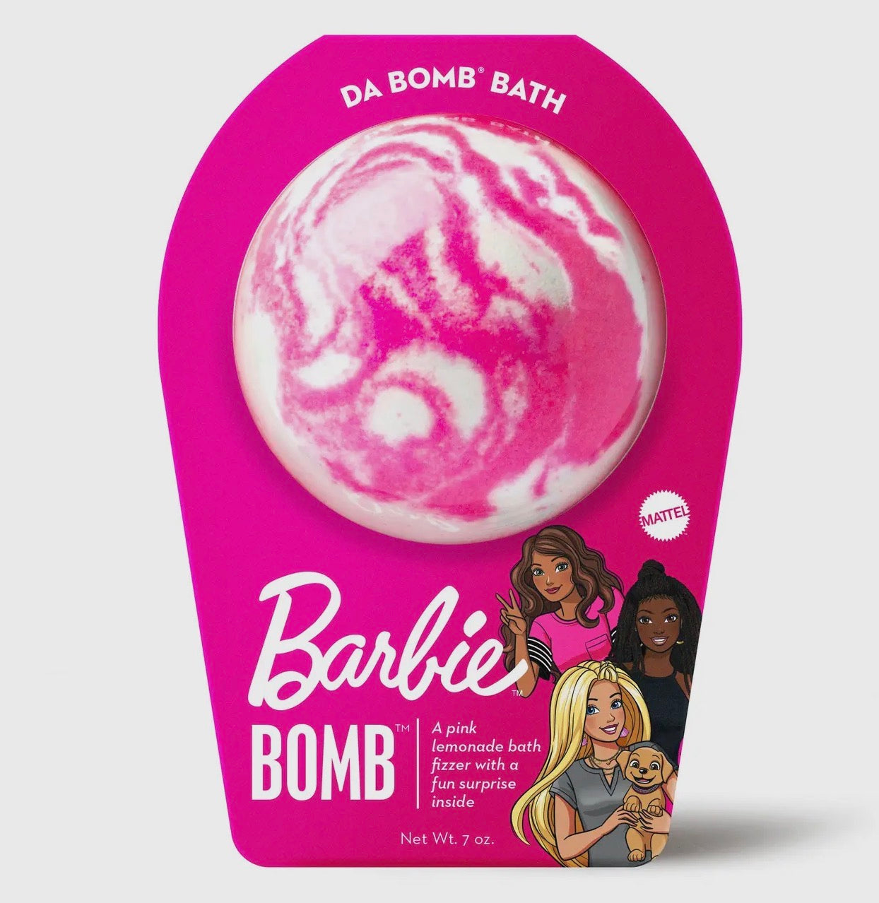 A fragrant bath bomb for Barbie™ fans! Watch carefully as this pink lemonade fizzer dissolves, because there’s a fun surprise inside. Perfect for adults and kids alike. (Everyone loves surprises.) Use one bomb per bath.