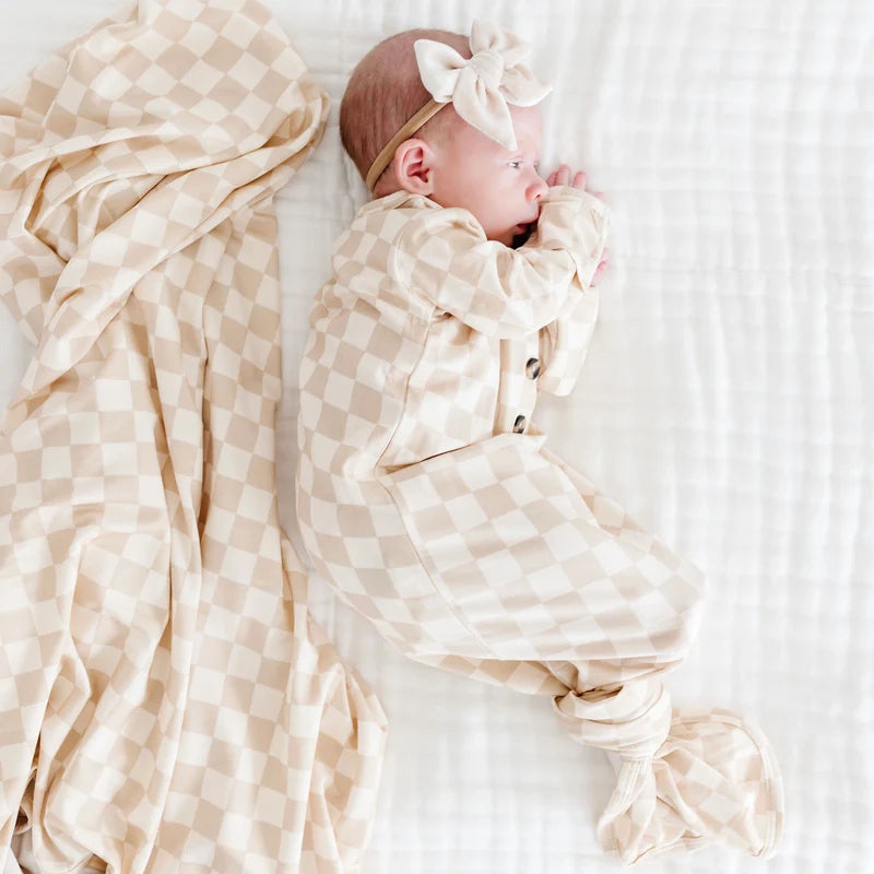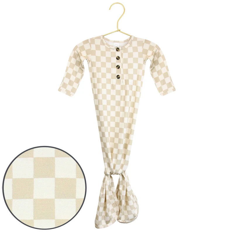 The easiest tie-bottom outfit for day or night. Made for hassle free diaper changes and gentle dressing, designed with a button-down front and tie bottom for simple closure (no more snaps at 2am!). Fold over wrist cuffs are the most thoughtful finishing touch.