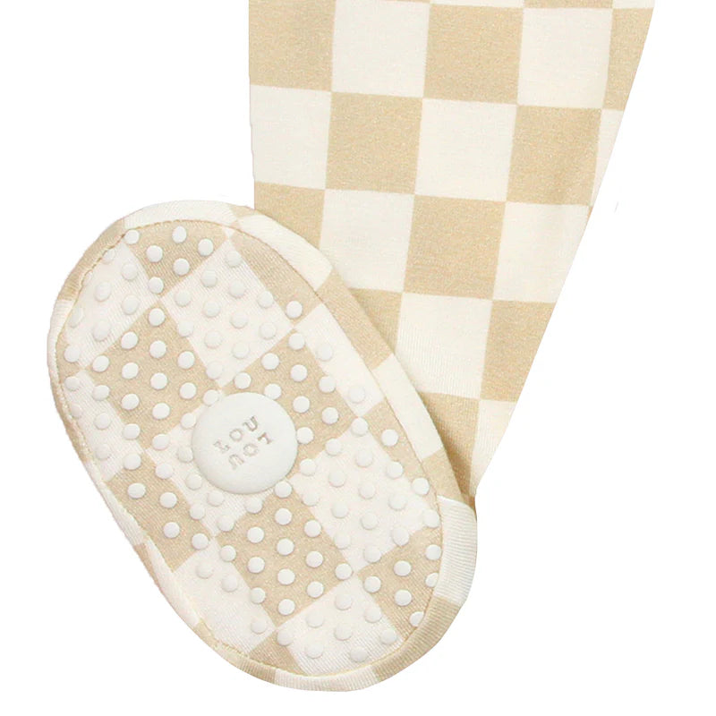 Tan and cream checkered footie