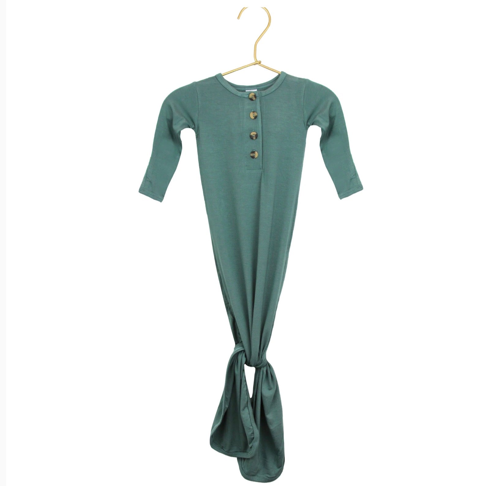 The Graham Knotted Gown is a cozy and easy-to-use outfit with a button-down front and a tie-bottom for quick diaper changes. Made from soft, breathable fabric, it keeps your baby comfortable and allows room to grow. Fold-over cuffs keep little hands warm and scratch-free. Perfect for day or night, this gown is a simple and gentle choice for your newborn.