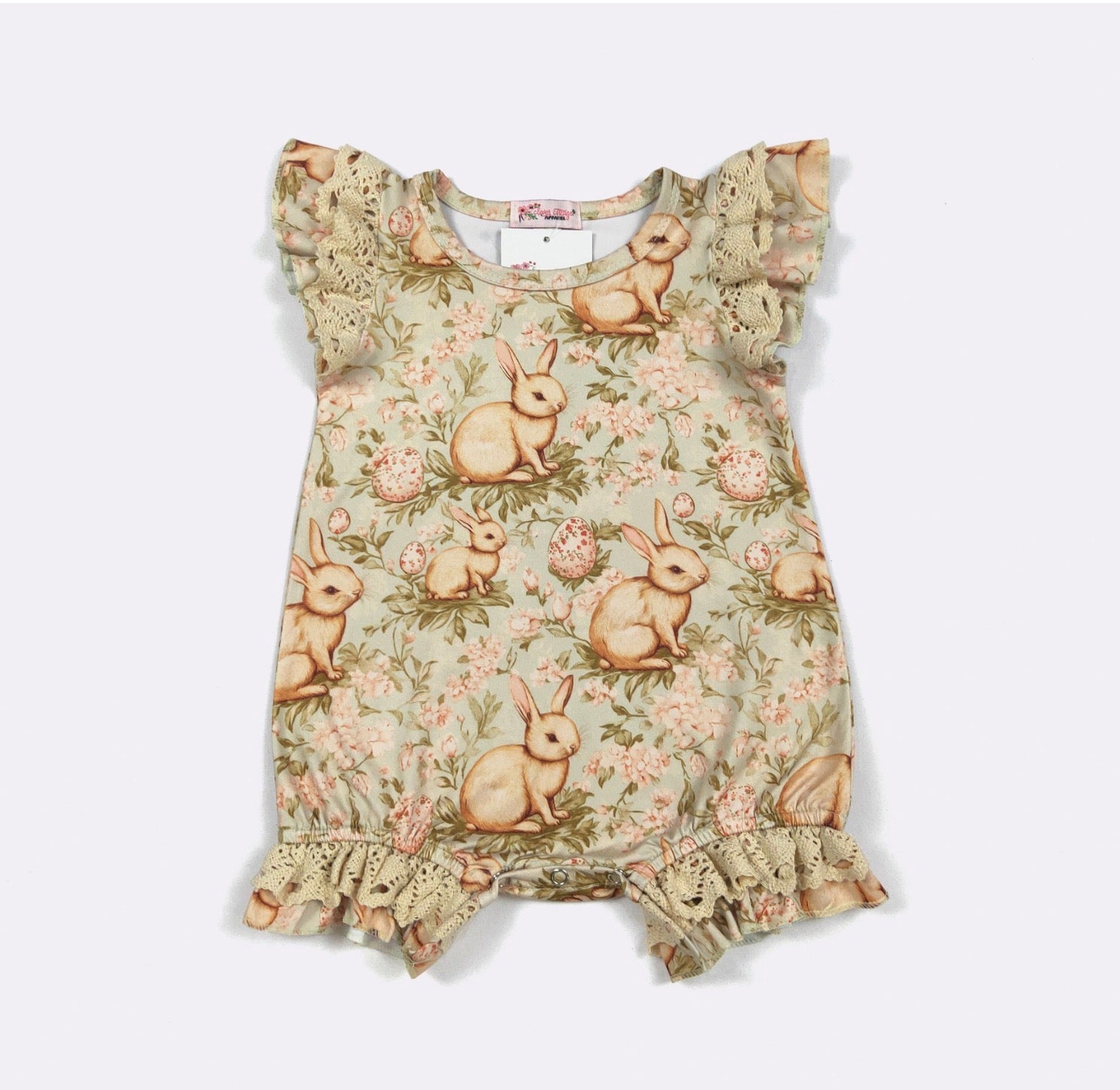 This precious romper is full of timeless charm and sweet details. Featuring a beautiful vintage-inspired bunny print with delicate floral accents, it feels straight out of a storybook. Made from soft, comfortable fabric, it’s gentle on baby’s skin while keeping them cozy and cute all day long.