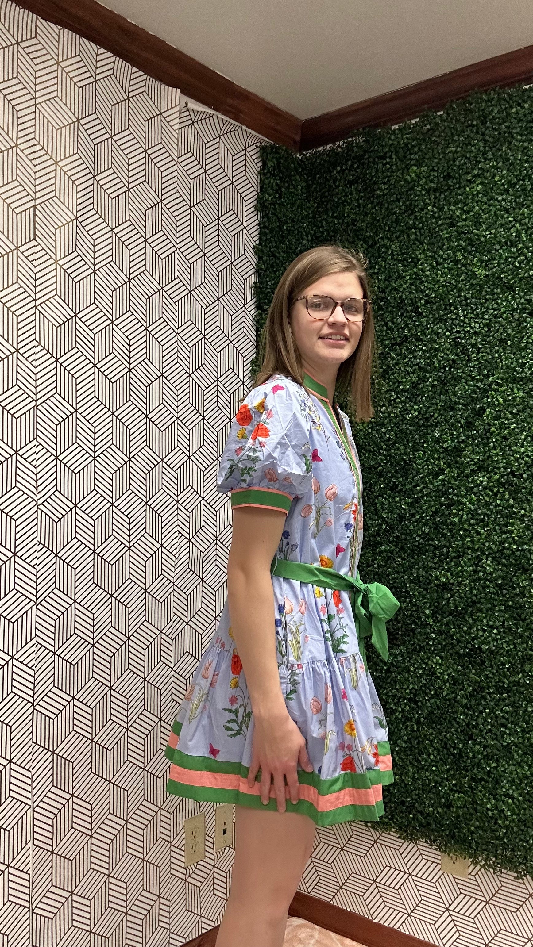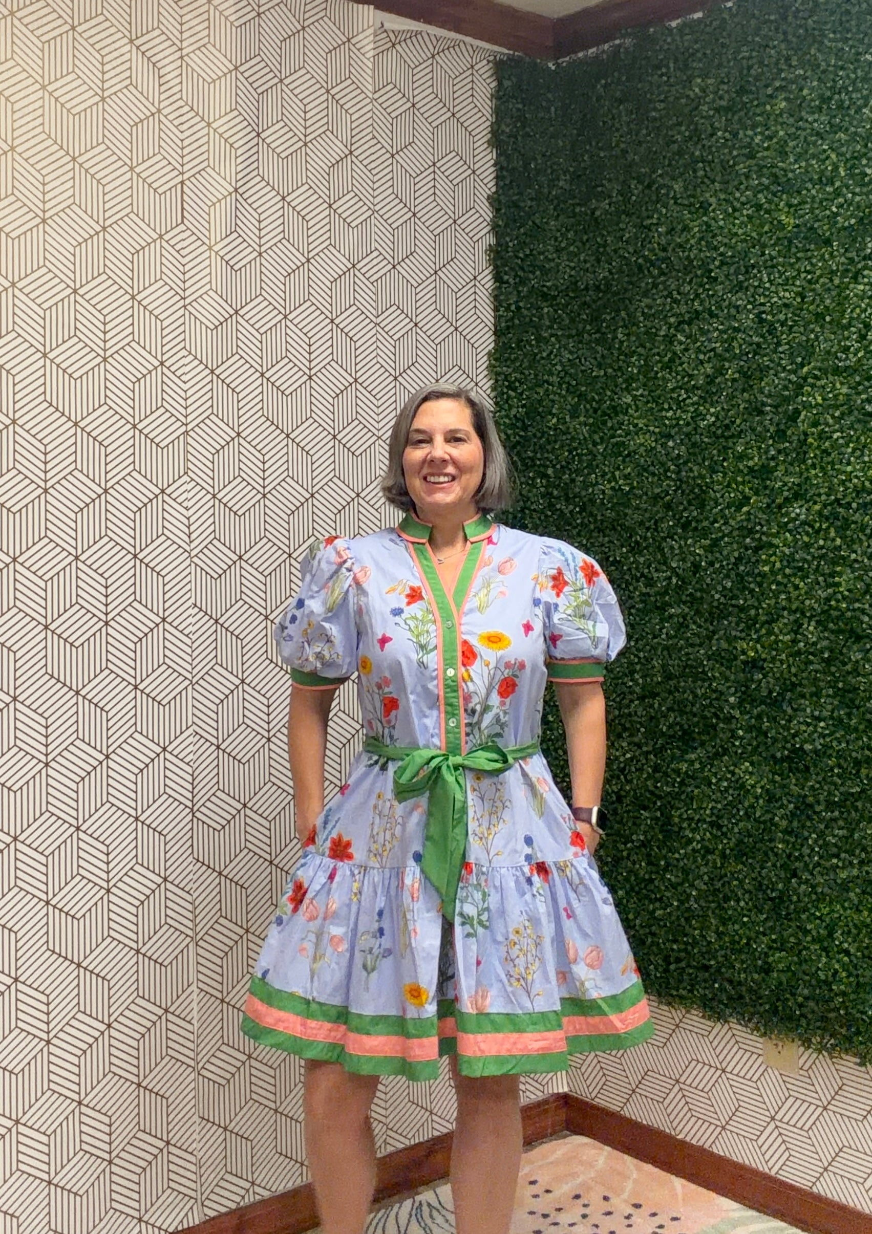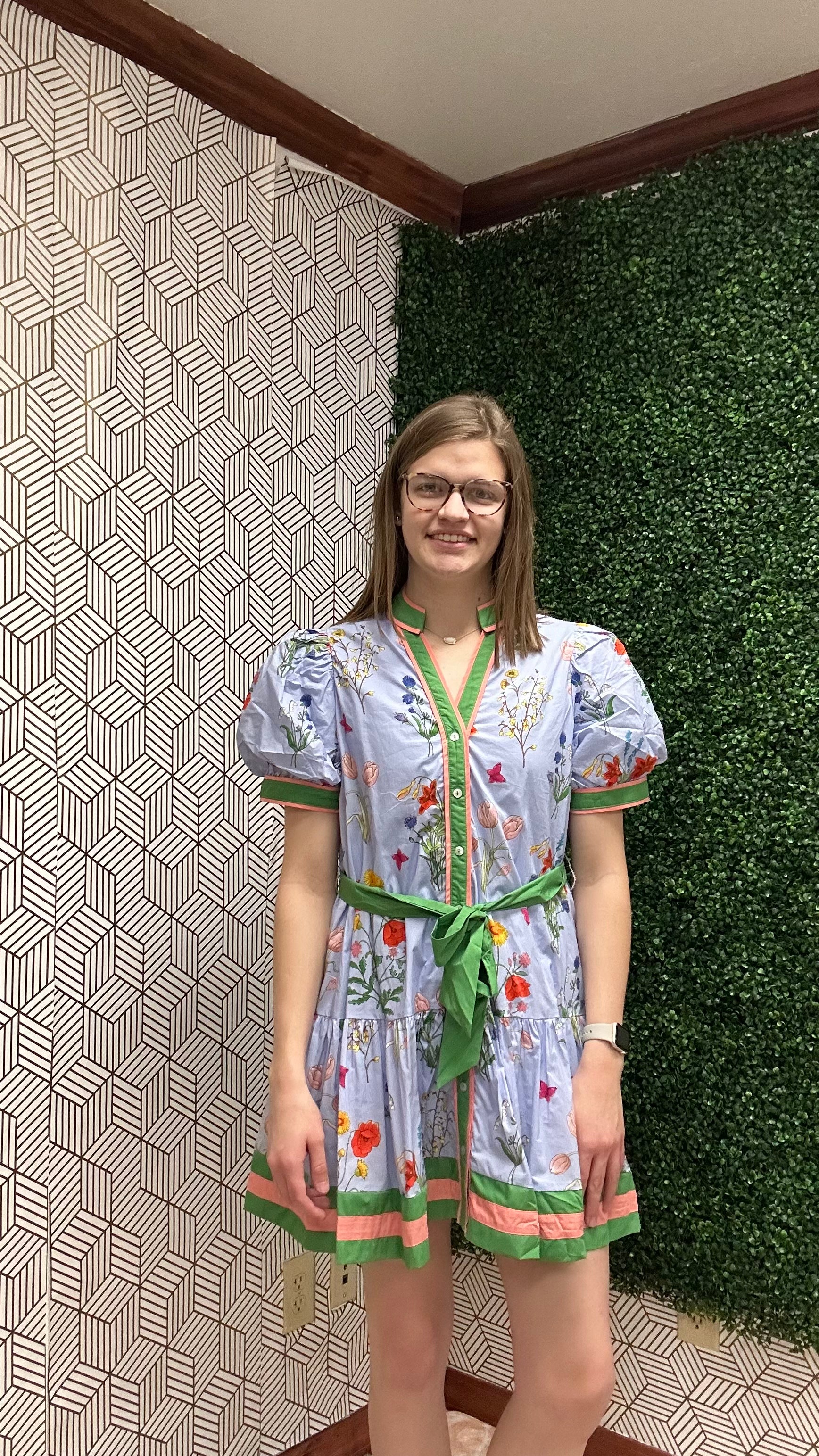 Floral Button-Front Tie Waist Dress Effortless style meets comfort in this charming floral dress. Featuring a flattering button-front design with an adjustable tie waist, soft puff sleeves, and vibrant blooms on a soft blue base, it's perfect for any casual occasion—from brunch to errands to weekend outings.