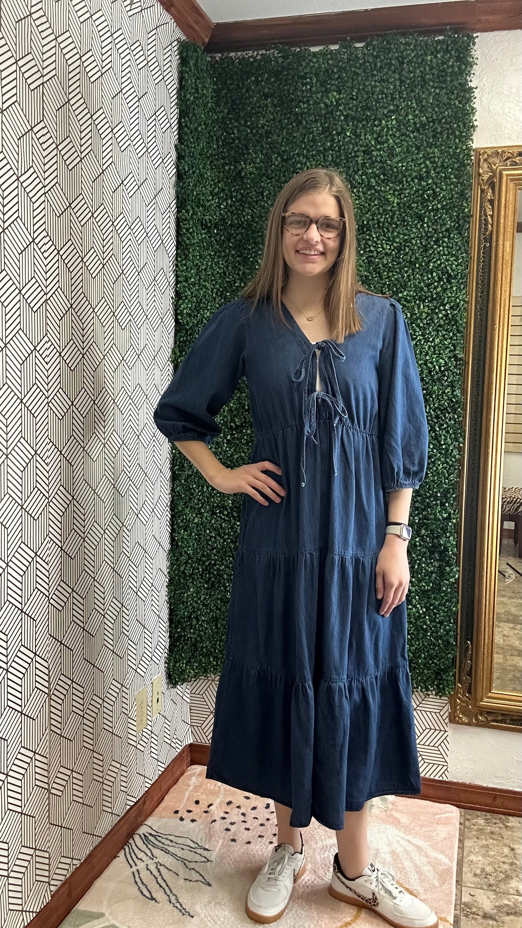 Effortlessly chic and oh-so-comfortable! This lightweight denim dress features a flattering tiered silhouette, soft flowy fabric, and feminine tie details at the neckline. ✨