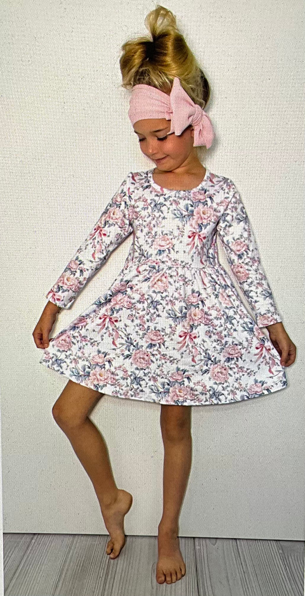 The Ribbon Whispers Dress is as sweet as a spring breeze. Designed in a soft white fabric, this dress features delicate blue and pink accents with dainty floral and ribbon patterns throughout. It’s a timeless, twirl-worthy style that’s perfect for tea parties, church, or any special day that calls for a little extra charm.
