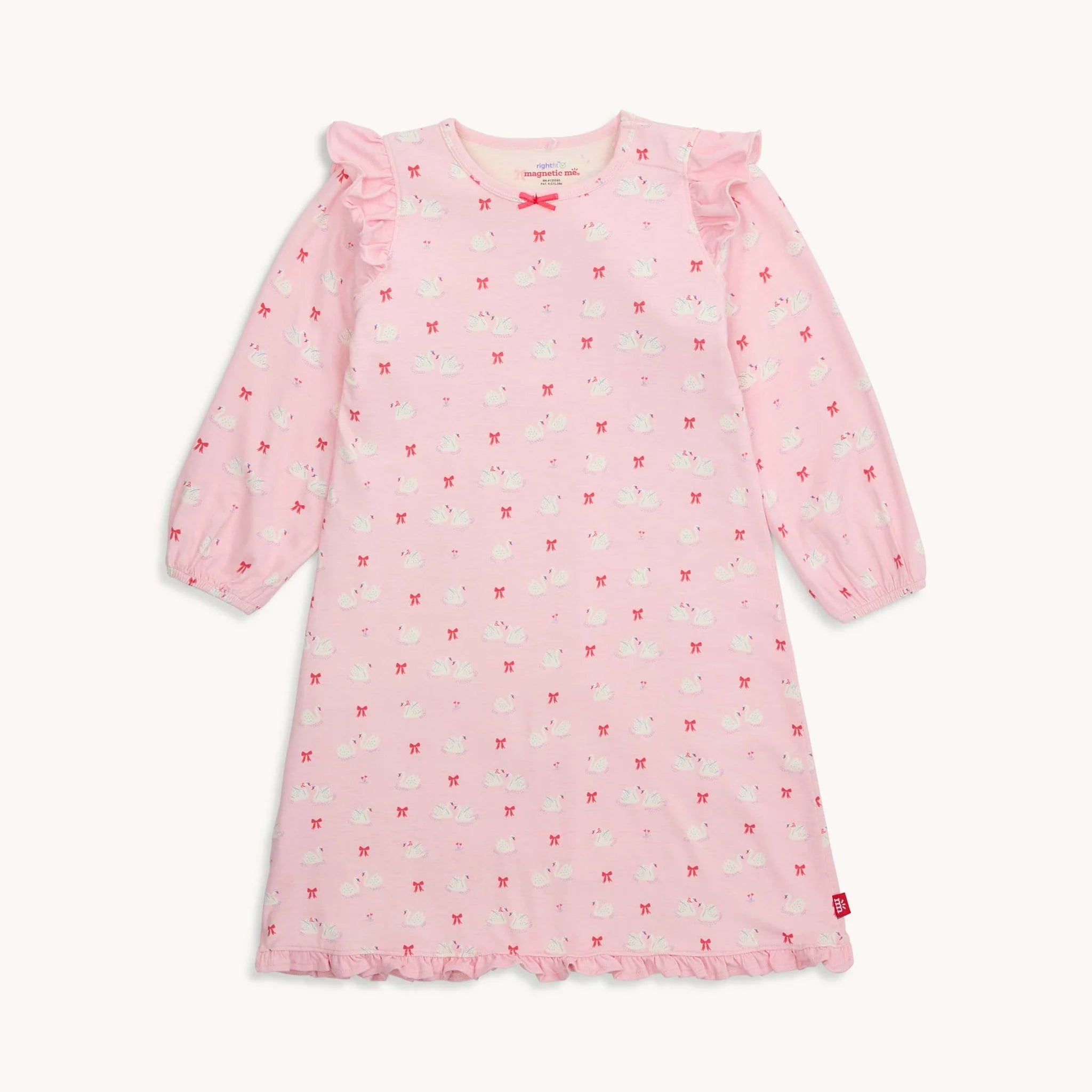 Our long sleeve nightgown for kids is made with magnets in a super soft, breathable RightFit™ fabric that makes bedtime feel fancy. The magnetic closure on the side expands the neckline to easily slide over the head. It's the nightgown princess dreams are made of with ruffles and just the right amount of swish.