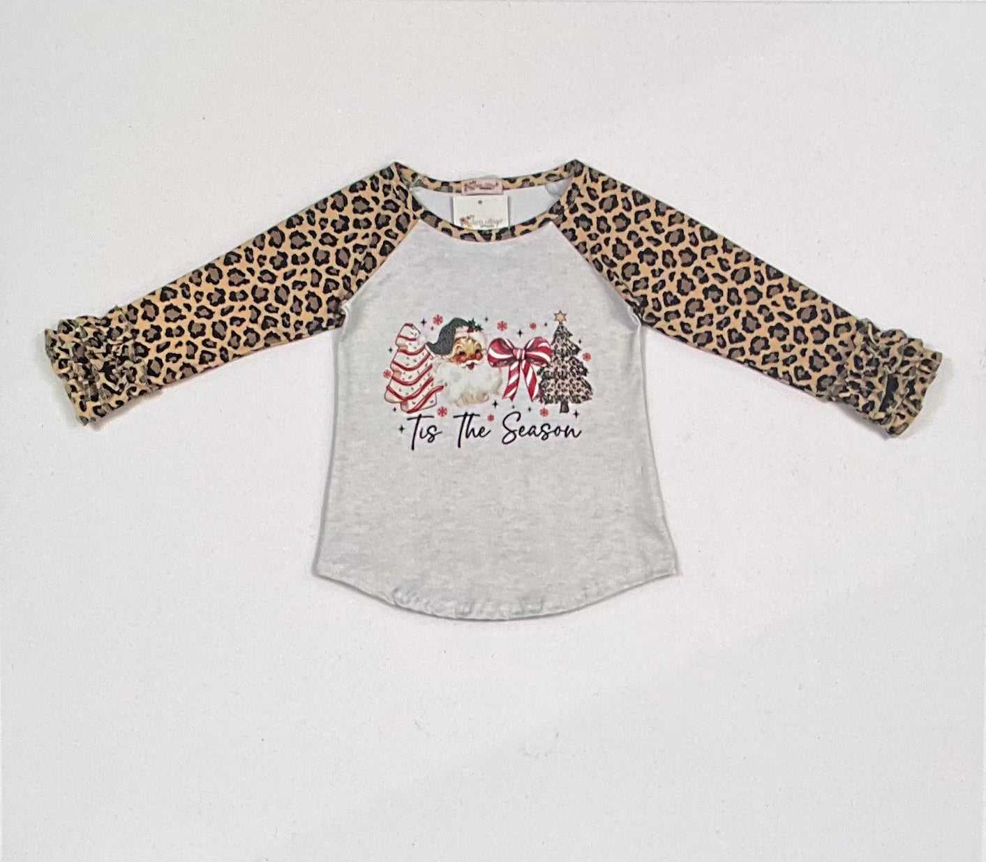 Tis the season to be festive and fierce! This fun holiday shirt features a playful Christmas design in the center and bold cheetah print sleeves that bring the perfect pop of personality. Ruffled cuffs at the bottom of the sleeves add a sweet, stylish touch—making this top a must-have for holiday photos, parties, or just spreading cheer wherever she goes.