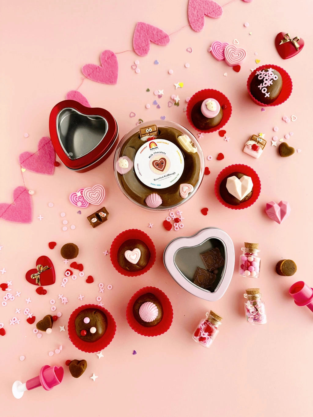 Making pretend chocolates has never looked, felt, and smelled so real! This Chocolate making Play Kit is the perfect way for kids to express their cooking creativity with imaginative baking play. Includes one 8 Ounce jar of Milk Chocolate Scented KidDough with an assortment of chocolate charms, embellishment charms, candy box charm, heart shaped candy window box, 2 plunger cutters, silicone candy tin liners, and jars of assorted Valentine's clay sprinkles and glitters. Our super silky sensory doughs are buildable like a modeling compound however they are softer, more pliable, and far longer lasting than any you have tried before! Every all-natural KidDough is made with non-toxic food grade ingredients and is totally taste safe. KidDough is the best way to play dough! Handmade in the USA. This Play Kit is recommended for Ages 3+. Ingredients: Wheat Flour, Salt, Canola Oil, Cream of Tartar, Water, Food Coloring, Organic Potassium Sorbate, and Natural Fragrance.