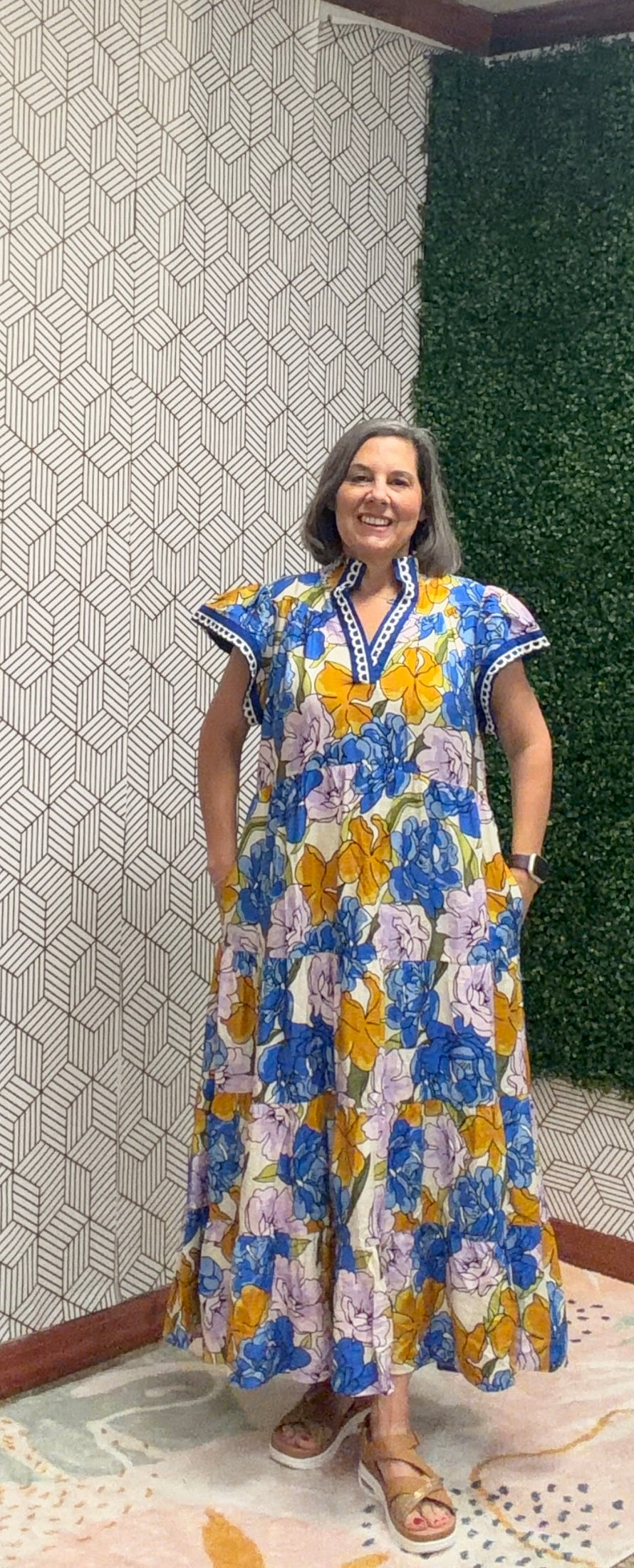 Bright floral midi dress with lightweight, draping fabric that moves comfortably all day. The tailored silhouette flatters your figure while the vibrant print adds cheerful color to any occasion—from garden parties to casual brunches. Dress it up with heels or down with sandals for versatile, season-spanning style.
