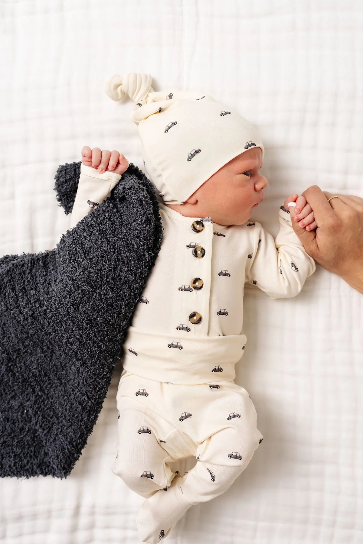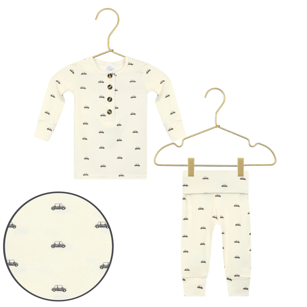 Good things come in pairs and our tops + bottoms are no exception. They’re made from our signature silky-soft material for a stretchy, comfy fit with functional buttons and fold-over waistband for room to grow (or to wear high-waisted). Say goodbye to socks that slip right off with built-in footies (on the newborn size only) to keep those tiny toes warm without the fuss. Unbelievably sweet mixing & matching approved.