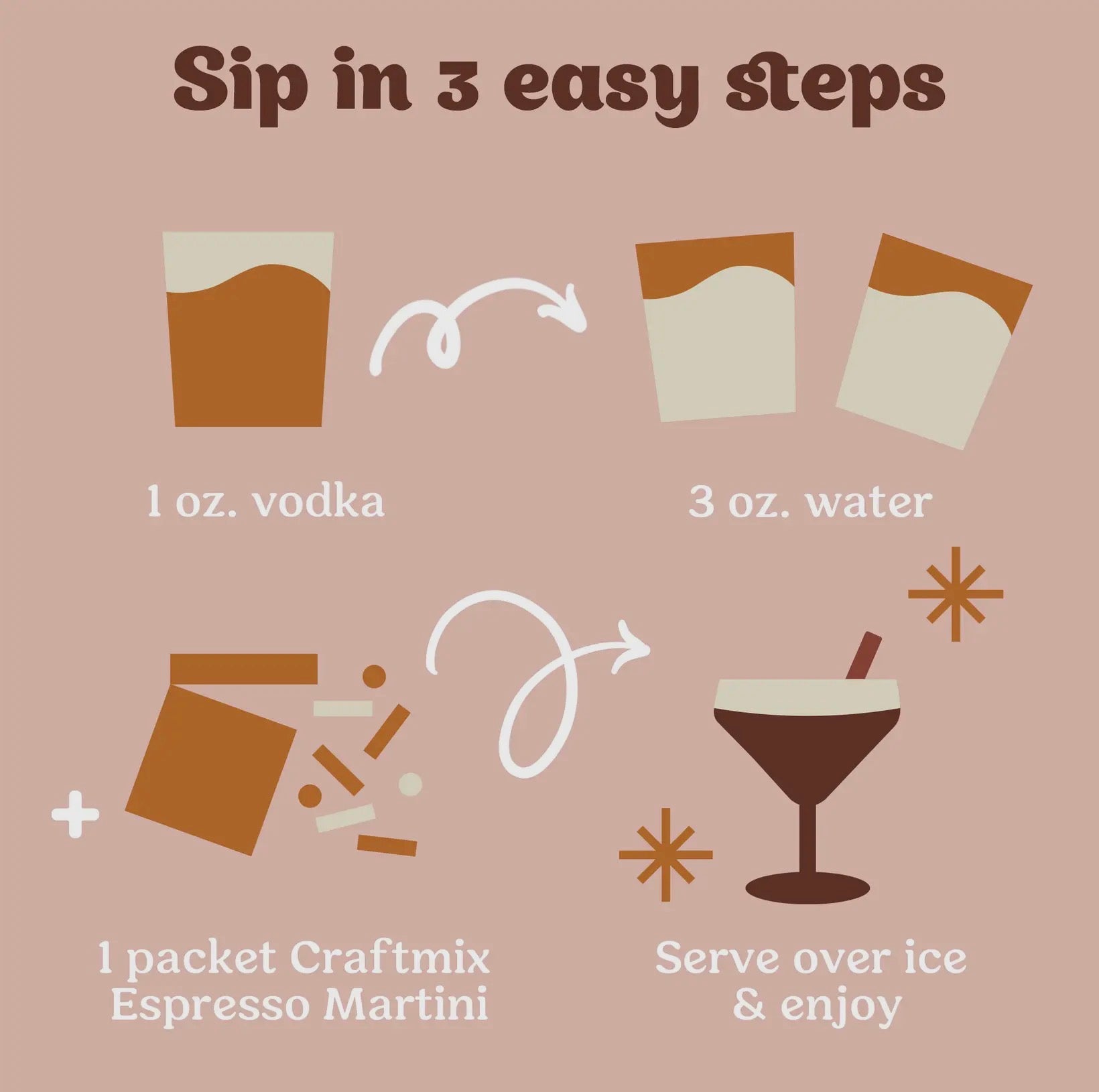 Instantly indulge in the bold, velvety taste of Craftmix Espresso Martini. Made with real espresso coffee and 30mg of caffeine per serving, this mix brings the iconic cocktail to life in seconds—no barista or bartender needed. Just add water and ice for a delicious mocktail, or mix with vodka for a classic Espresso Martini with a real kick. Each single-serve packet has only 5g of sugar, 25 calories, and no artificial ingredients, making it a smarter way to sip your favorite after-dinner drink. Whether you’re hosting or unwinding solo, this cocktail hits every time—smooth, energizing, and effortlessly crafted.