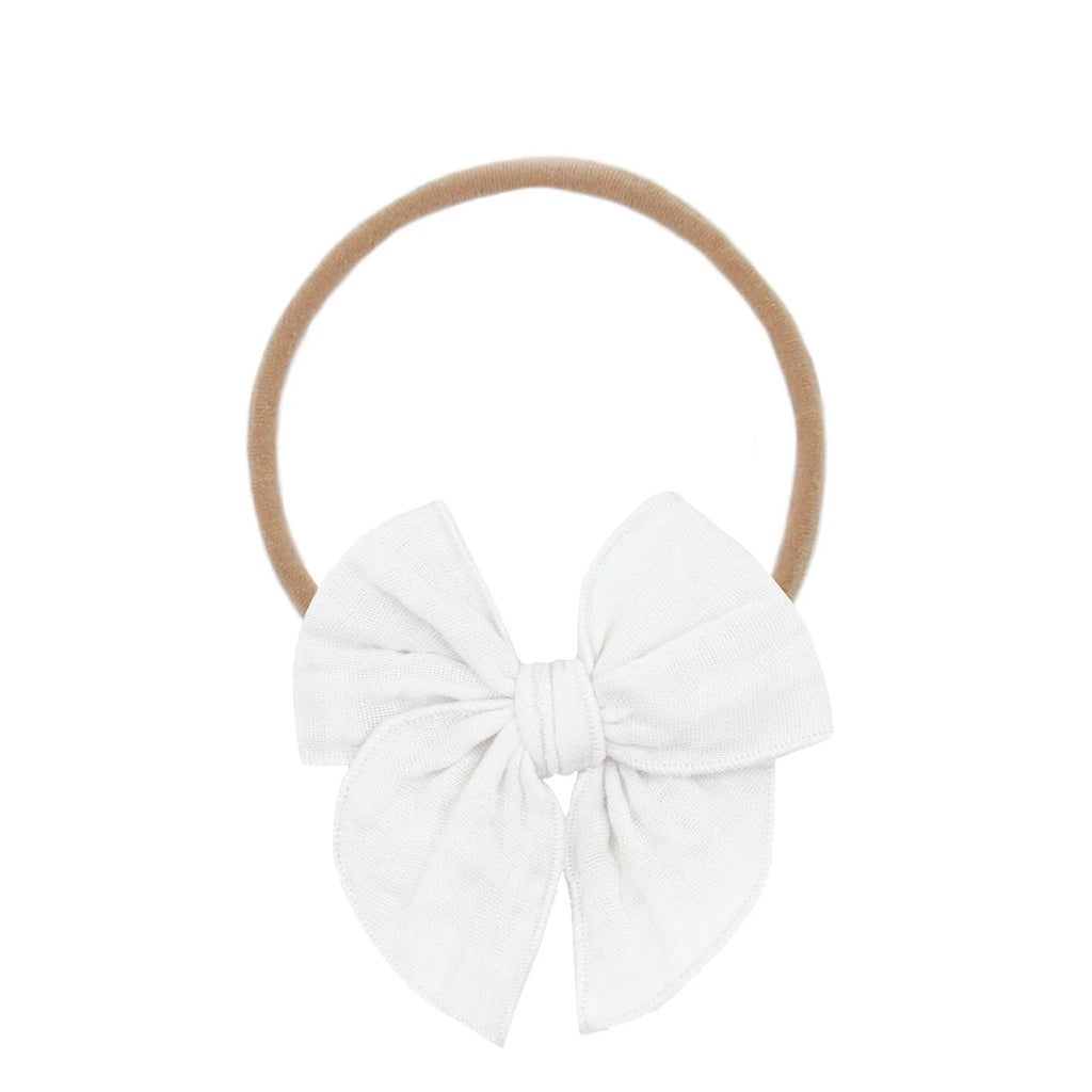 Each bow is hand-tied by local moms and attached to either a nylon headband or alligator clip. All bows and edges are secured and sealed so they don’t come undone.